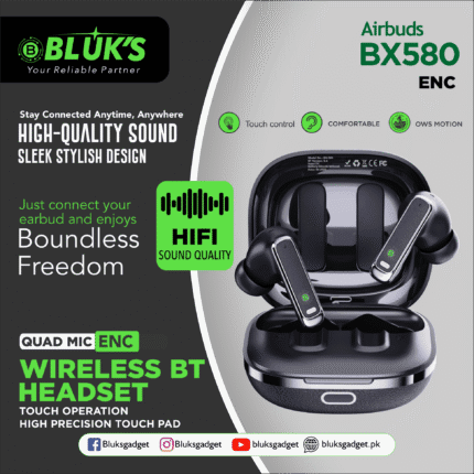 Original price was: ₨ 6,199.₨ 3,099Current price is: ₨ 3,099.Bluks BX-570 Wireless Earbuds With Deep Bass & ANC – 2025 Edition