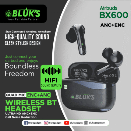 Original price was: ₨ 6,099.₨ 2,999Current price is: ₨ 2,999.Bluks BX-600 Wireless Earbuds With ANC, HD Mic, And 2.4GHz Dongle