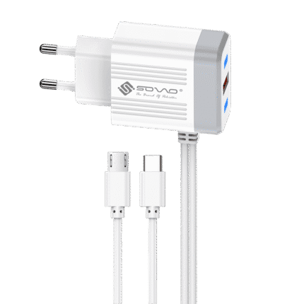Original price was: ₨ 1,500.₨ 799Current price is: ₨ 799.SOVO SG-77 Type-C Charger With 2 USB Ports – 2.4 Amp Rapid Charge Power Adapter for Phones and Tablets