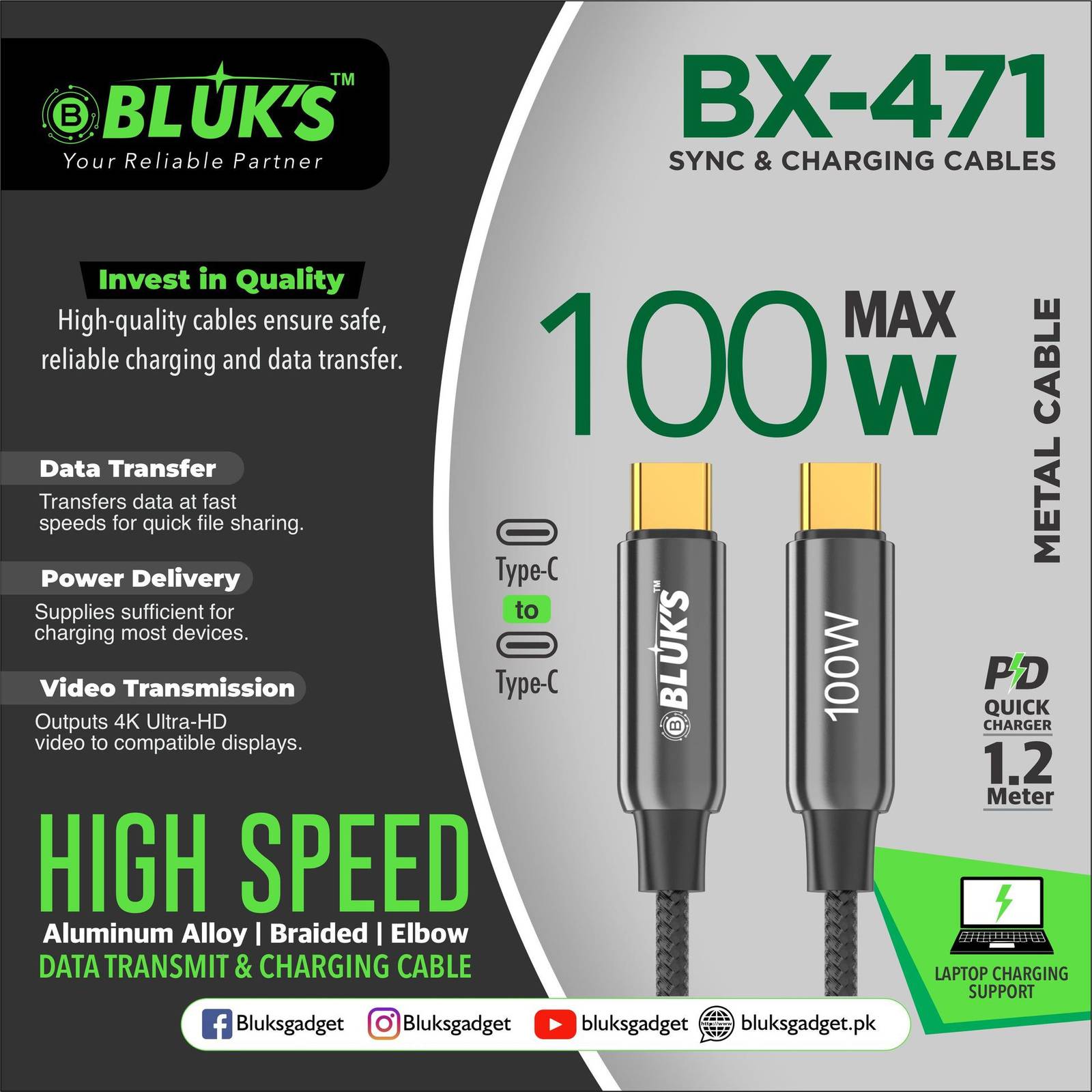 Bluks BX-471 100W USB-C to C Charging Cable – 2025 Edition