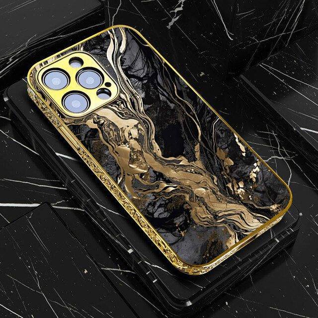 Golden Black Marble – Premium Electroplated Phone Case | 2025 Edition