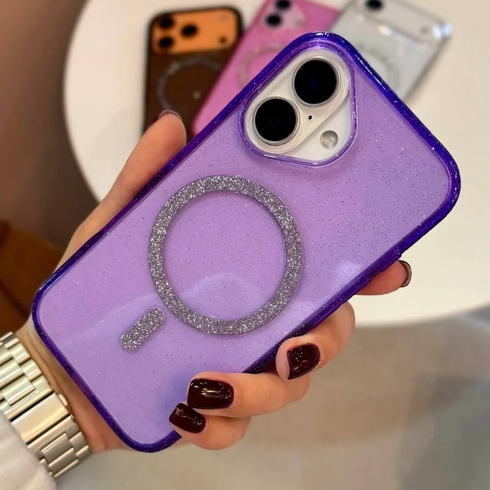 MagSafe Bling Shimmer Case For iPhone – Glitter Clear Shockproof Cover With MagSafe Support