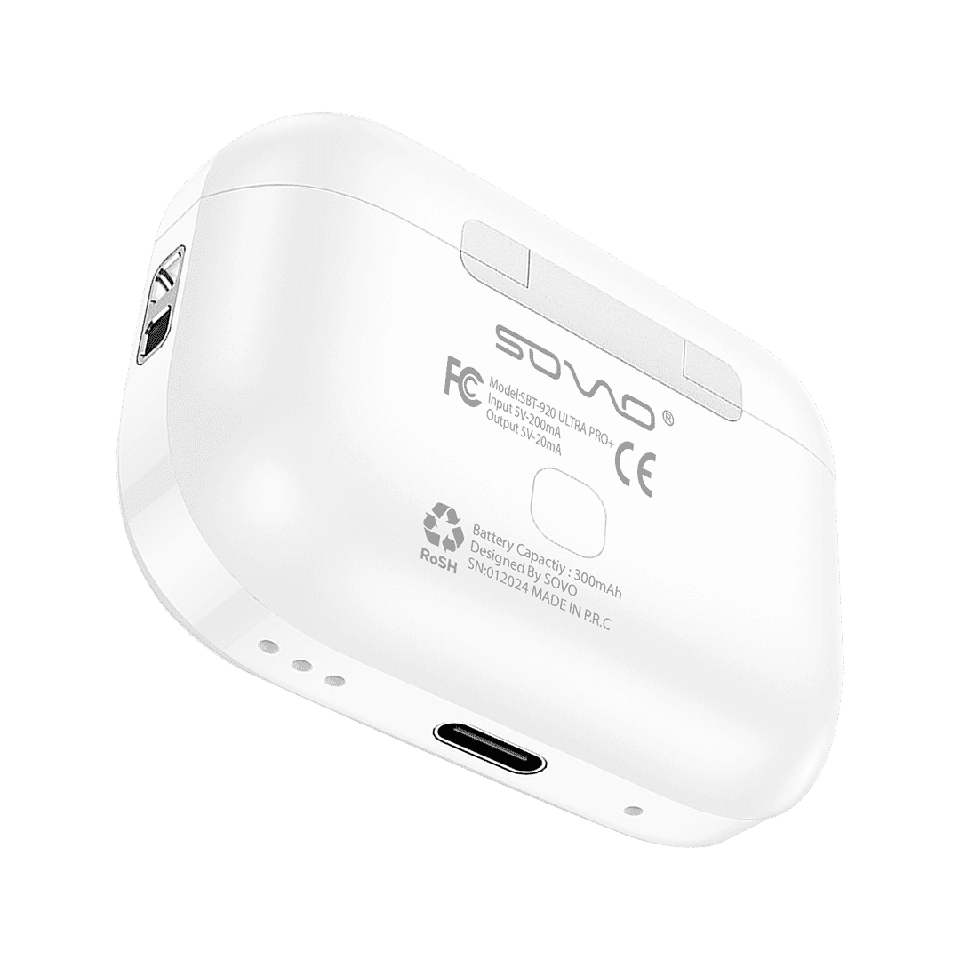 Introducing the SOVO Ultra Pro Plus (SBT-920) Wireless Earbuds, 2025 Edition, now available with a one-year brand warranty from Dynamite Accessories. These cutting-edge earbuds offer a seamless listening experience with crystal-clear sound quality and a comfortable, ergonomic design. With advanced Bluetooth technology, you can enjoy wireless freedom while staying connected to your favorite devices. The SOVO Ultra Pro Plus earbuds are perfect for on-the-go lifestyles, providing up to 8 hours of playtime on a single charge. The sleek charging case extends the battery life even further, ensuring you never miss a beat. With easy touch controls and noise-cancellation features, these earbuds deliver convenience and premium audio performance at an affordable price in Pakistan. Upgrade your listening experience with the SOVO Ultra Pro Plus Wireless Earbuds and enjoy music like never before.